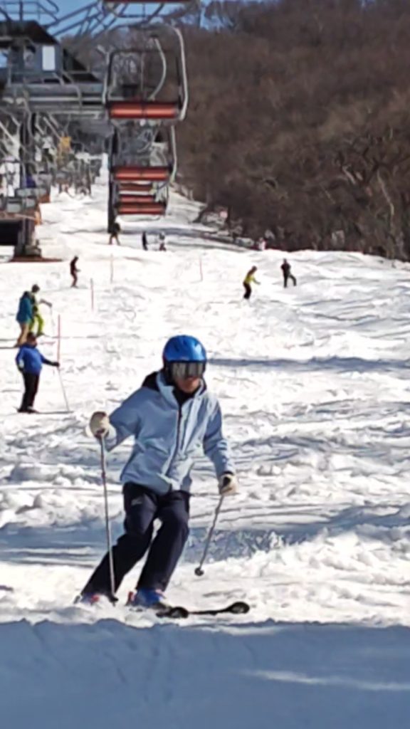 コブでは、先ずラインの確認をし、実際に1コブ練習。出来たら3コブ。また出来たら5コブ。そして10コブ。成功体験が自信をつけ、怖さも低減。